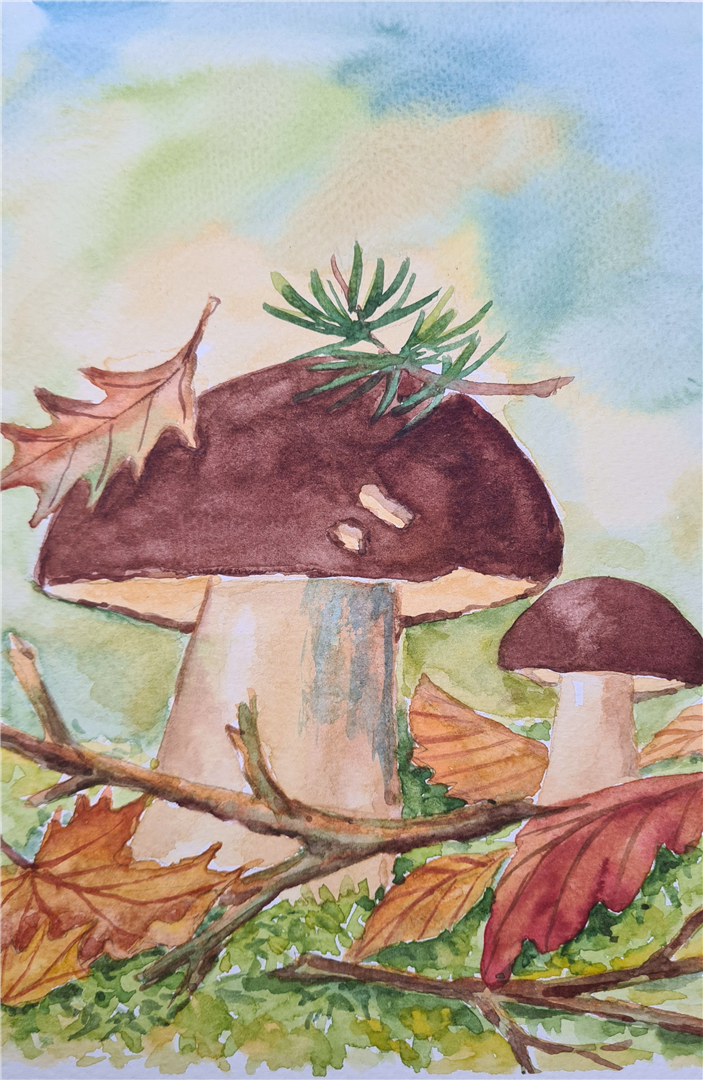 Auch andere Motive wie Pflanzen oder Tiere können wir mit warmen Herbstfarben gestalten.